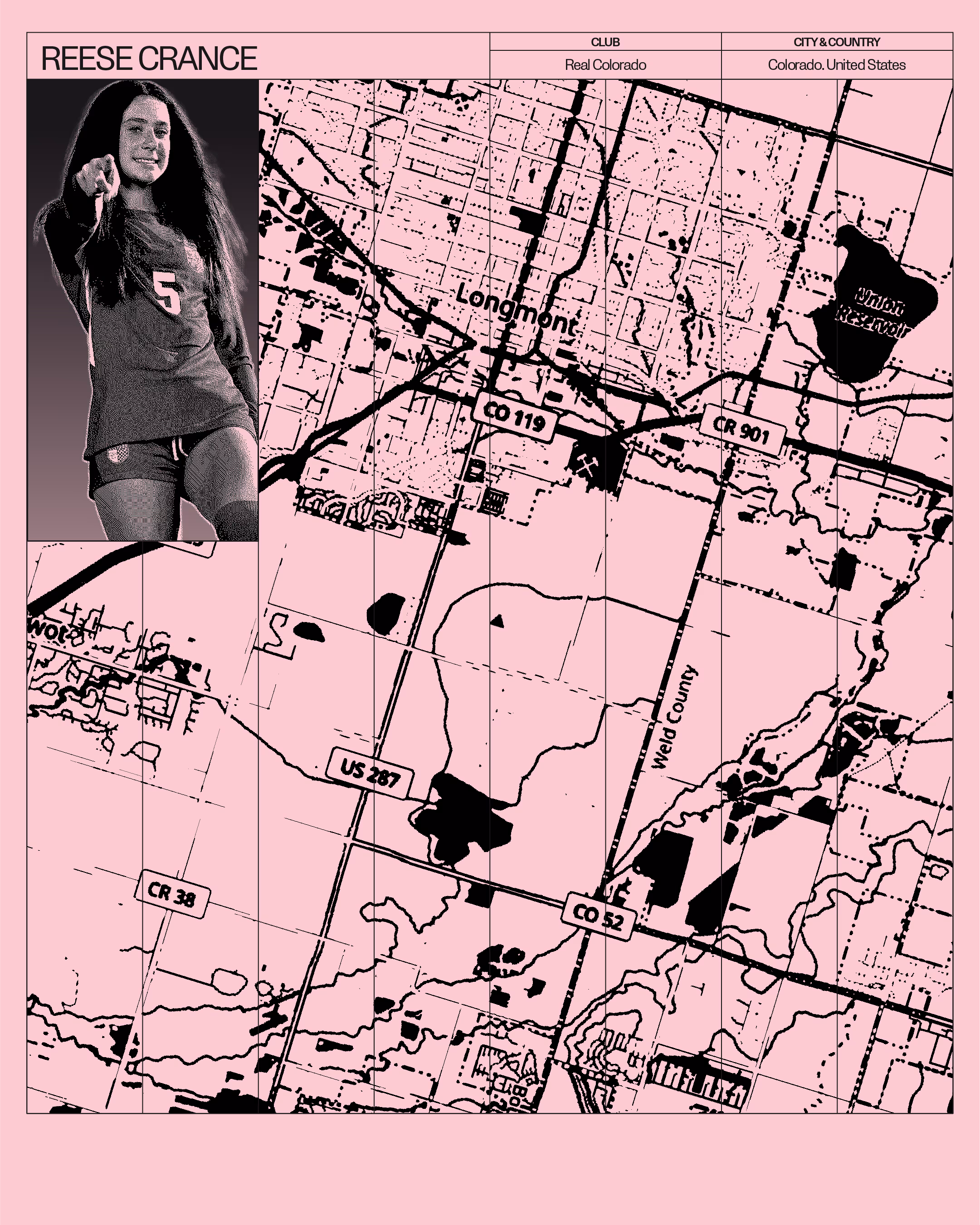 Le ballon arrive à Reese Crance dans sa propre moitié de terrain. Le Real Colorado Olympico construit des attaques tout le match contre Utah Surf sans trouver l'ouverture. Maintenant Reese voit quelque chose que ses coéquipières n'ont pas encore créé : de l'espace devant et une opportunité de duel.